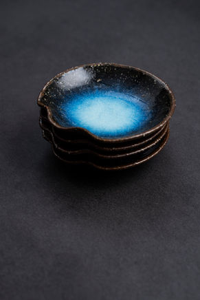 Based in Yamaguchi Prefecture where Hagi-yaki originates, Susumu Notomi has been making pottery since 1975. Through numerous experiments of combining the local clay and his glazes fired in a high-temperature kiln, he has invented ao-hagi (blue hagi-yaki) which brings out a dramatically wide range of blue, from deep indigo to light ice blue. His works do not only capture the natural beauty of blue, but also transcend the traditional boundaries of this ancient pottery style.